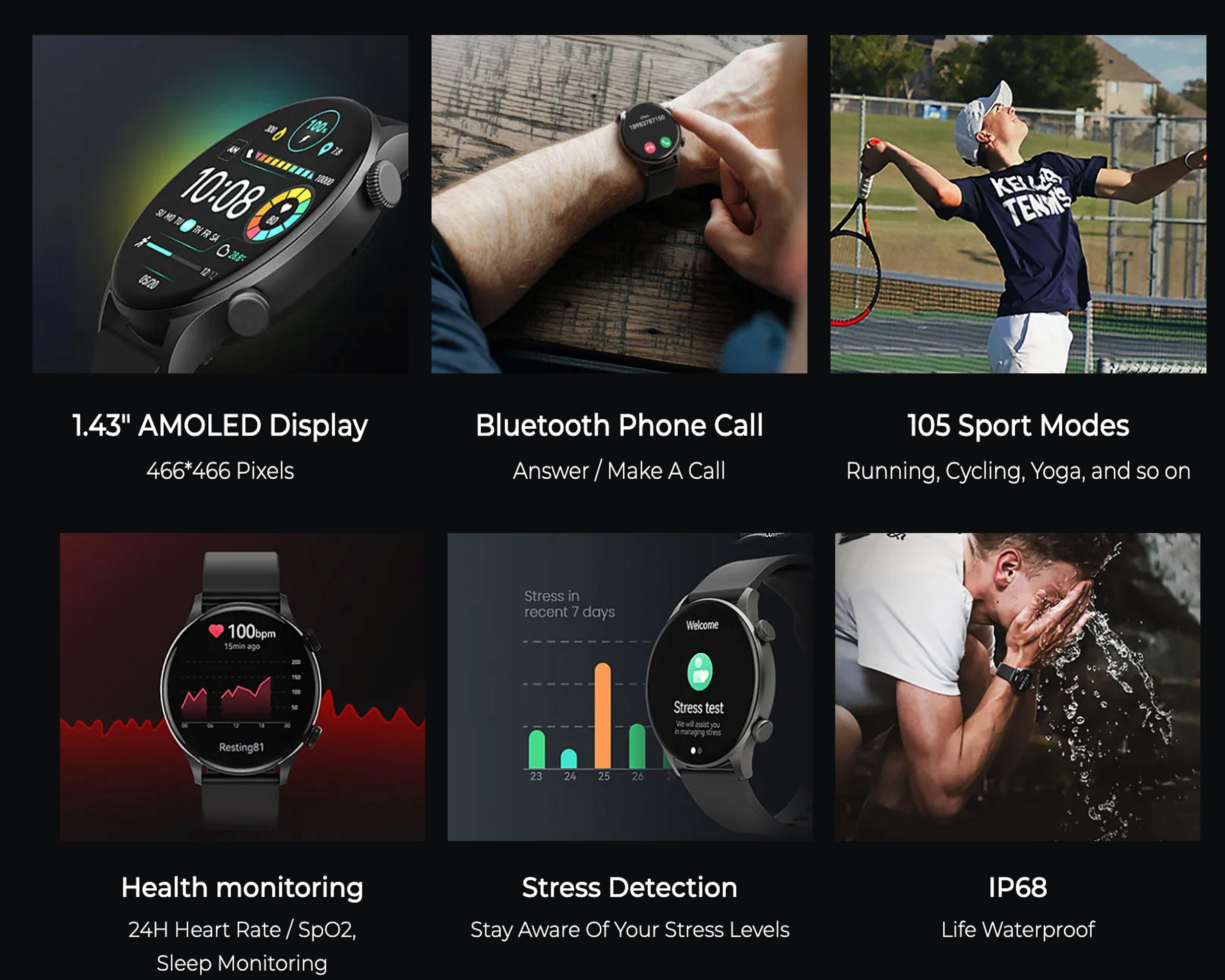 | Display | 1.43-inch AMOLED Display, 466*466 Resolution |