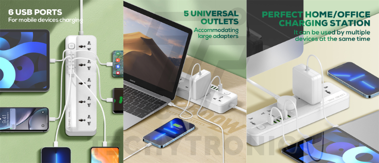 Ldnio SC5614 Power Cord Extension Socket with 6 USB ports